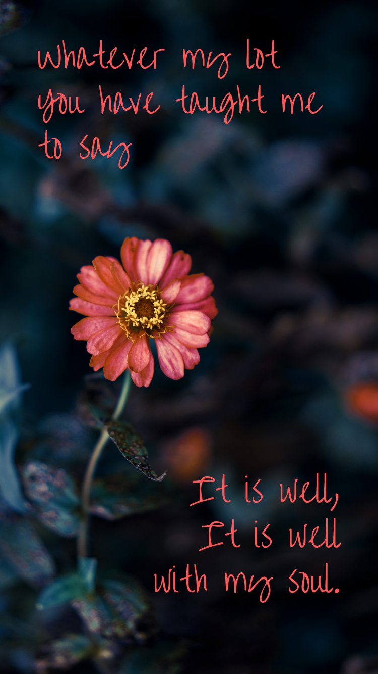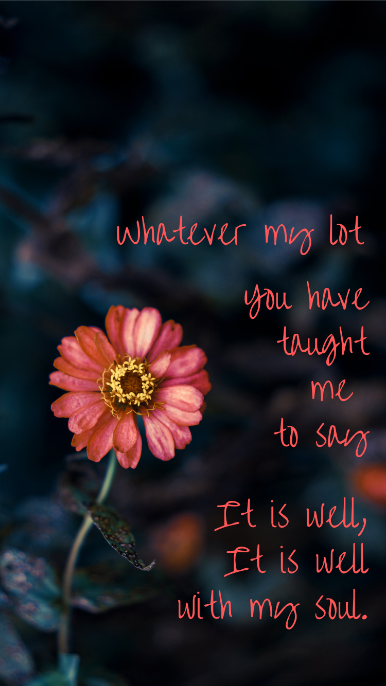 “It Is Well With My Soul” is one of my favorite hymns, my go-to when things are hard. I sang it while my husband was in emergency surgery, I sing it when I’m disappointed or afraid. It’s not just a song, it’s a prayer. A reminder that there’s more to the moment than what I can see. That the One who is in control is good, even when things aren’t. That He is faithful to complete what He started and to fulfill His promises. That, eventually, ALL will be well…but for now, my soul can be, at least.
