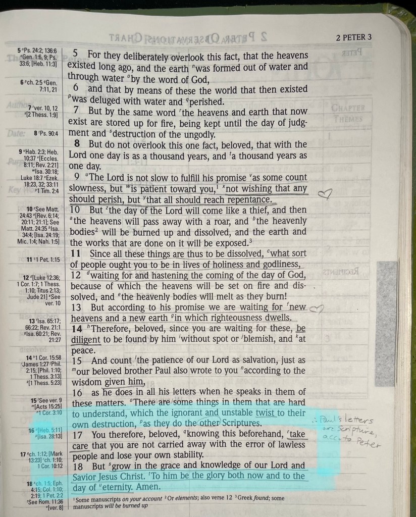 Here’s more: “His divine power has granted to us all things that pertain to life and godliness, through the knowledge of Him who called us to His own glory and excellence…” (2 Peter 1:3 ESV) All things that pertain to life and godliness, through the knowledge of Him. And how do we have knowledge of Him? We get some general information from nature, of course, but He’s also given us all the specific information about Him we could need through His written Word, which He has lovingly provided and preserved for us.