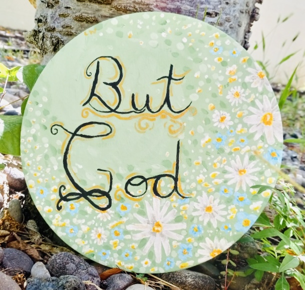 My teenage daughter painted the beautiful “But God” you see below for my birthday. It has the central place of honor on our mantel, partly because she made it and it’s beautiful, and more importantly because I want the reminder of God’s goodness and provision and plan to be central in our minds, forefront in our perception of life, and proclaimed to all who come into our home.