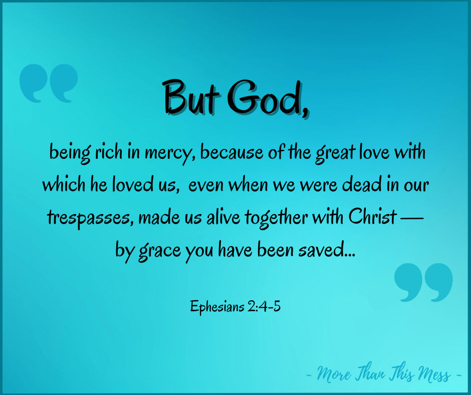 One of my favorite phrases throughout Scripture is “but God.” Such hope in that phrase! My sin earned me death…but God. This world is full of darkness…but God. Things don’t go the way I want them to…but God. Things are sometimes downright terrible…but God. I struggle and fail, over and over…but God.