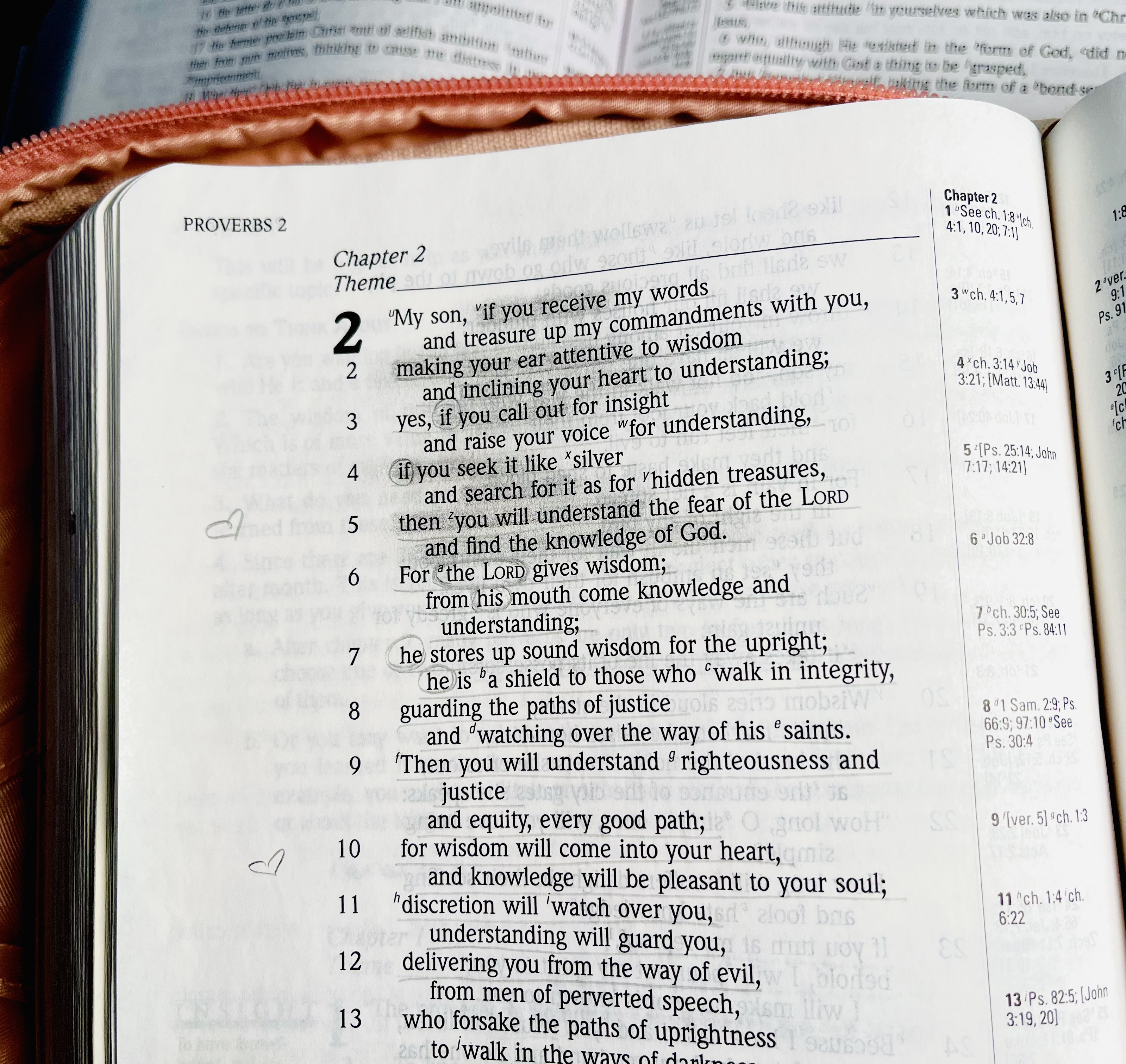 As I’m reading Proverbs 1 this morning (yes, I know the photo is Proverbs 2; it was just so fitting, I had to include it!), I’m reminded that this is a book God gave us to teach us wisdom — because we have the ability to listen, to learn, and to choose what we do, even when our feelings tell us otherwise.