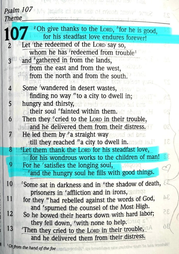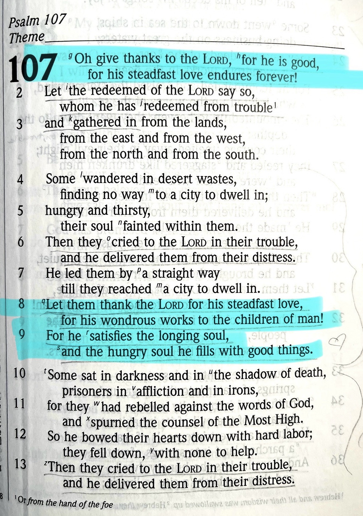 “Oh give thanks to the LORD, for he is good, for his steadfast love endures forever!”