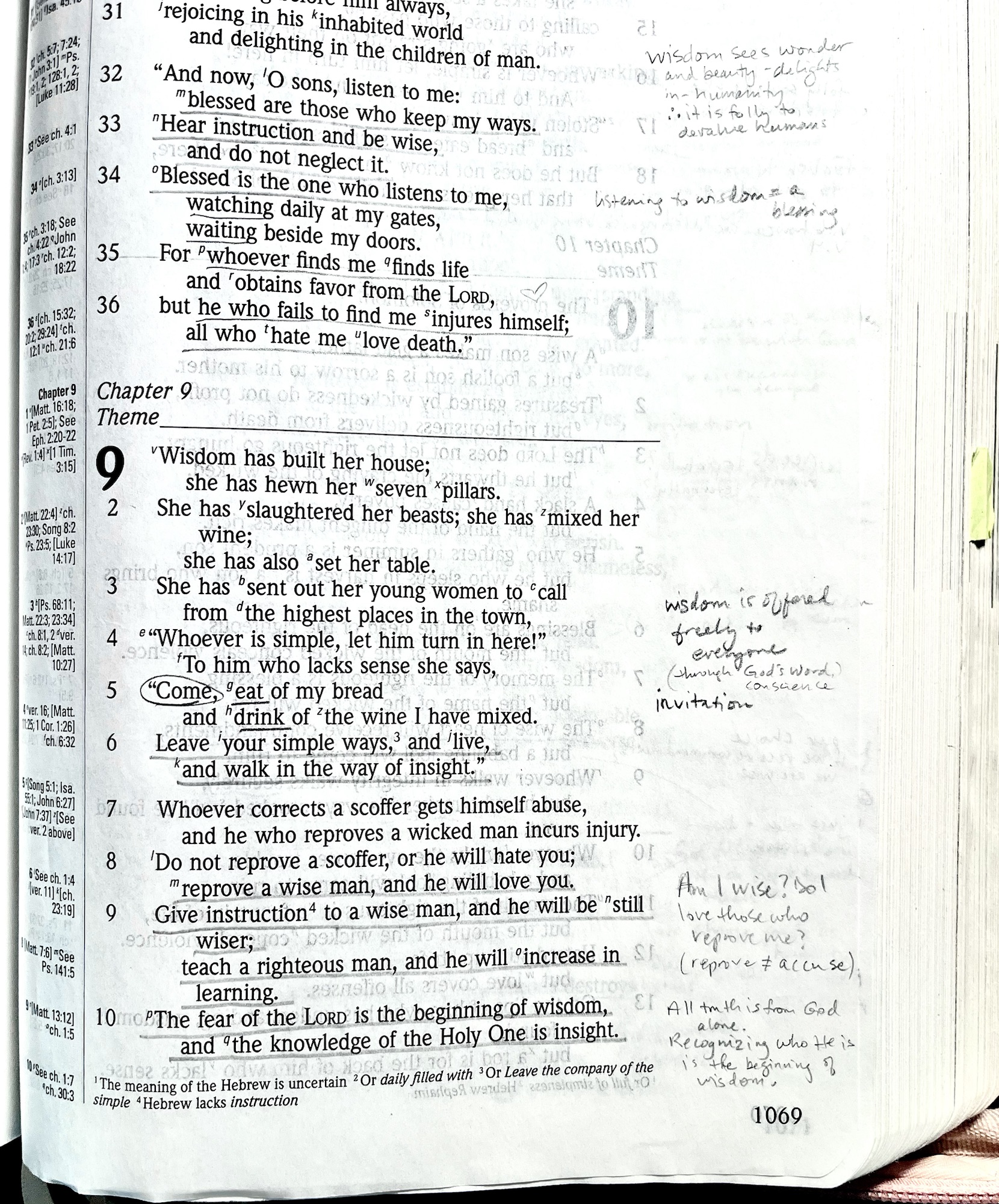 So first, we listen to what’s being said, and then we compare everything we hear to Scripture to find out whether it’s wise or foolish. If we don’t do that work, we’ll be taken in by folly, because foolishness is deceptive and makes itself sound like wisdom (Proverbs 14:8). It can even sound caring, loving, kind, sensible, and, yes, wise to our own sensibilities. But our perceptions are not always right! We can’t depend on them to discern wisdom from folly (Proverbs 28:26). We have to look to God’s revealed wisdom to have accurate understanding (for further reading on this, see my post on Proverbs 3:5-6).