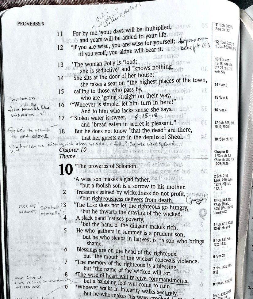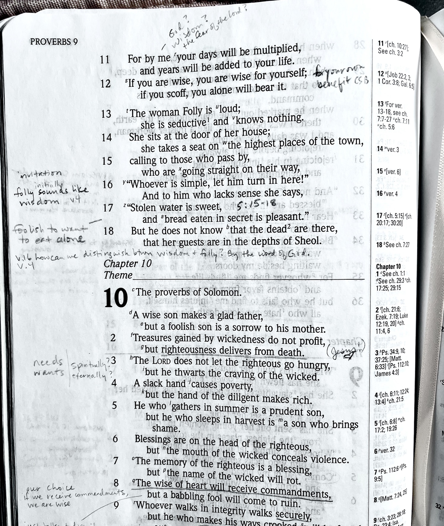 Note that in verse 18, we see that those who have listened to Folly have died. Her way ends up being the way to death, not life; she was not offering wisdom at all, even though she claimed to be. So it’s really important that we tell the difference between wisdom and folly!