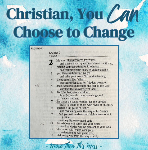 Want to Listen? Click above to listen to Bible Study Basics Part 3: How Can a Regular Person Study the Bible? Click above to listen to Bible Study Basics Part 2: What Should a Regular Person Know to Study the Bible Well? Click above to listen to Bible Study Basics Part 1: Why Should a Regular Person Study the Bible? Click above to listen to Everything Bitter is Sweet: A Close Look at Proverbs 27:7 Click above to listen to Dwell Secure, Without Dread (Proverbs 1:32-33) Click above to listen to “Whoever is Simple, Let Him Turn In Here!” Wisdom or Foolishness? How to Tell (Proverbs 9) Click above to listen to God Gives Wisdom — But How? (Proverbs 2:6) Click above to listen to Giving Thanks is More Than Being Thankful Click to listen to Guest Post: Joking & Entertainment for the Christian on my daughter’s YouTube channel. Click above to listen to Good News: What is the “good news,” & why do I need it? Click above to listen to Politics & Christ-Followers: The Weightier Matters (Why I Changed My Mind) Click above to listen to Anxiety: 12 Scriptures to Study & Pray When You’re Feeling Anxious or Afraid Click above to listen to 12 Scriptures to Study & Pray When You’re Feeling Anxious or Afraid (Scriptures only) Click above to listen to Light in the Darkness: A Poem of Hope Click above to listen to Four Biblical Steps to Fight Sin…and Win Click above to listen to Proverbs 3:5-6 — A Deep Dive into a Well-Known Passage Click above to listen to Even If: A Reminder of Our Reality Click above to listen to Why Do Christians Disagree? Click above to listen to 11 Prayers in Scripture for When You Don’t Know How to Pray Click above to listen to A Little About Bible Translations and Quotes Click above to listen to How Should a Christian View Scripture? Click above to listen to Politics and Christ-Followers: Where is Your Focus? Click above to listen to Every Moment Matters Click above to listen to Christian, You CAN Choose to Change Click above to listen to Remember What God Has Done Click above to listen to But God: A Favorite Phrase, A Shared Poem Click above to listen to Why Does Sin Earn Death? Click above to listen to Give Thanks for the Most Important Thing Click above to listen to Christian, Be On Your Guard – There is No Neutral Click above to listen to Christian, Don’t Clear Your Mind Click above to listen to You’ve Got Us; Who’s Got YOU? Click above to listen to New Year’s Resolution (or Not): Pursue Truth Click above to listen to (Bad News and) Good News for Christmas Click above to listen to When the Bible is Hard to Understand Click above to listen to You Are Enough* Click above to listen to Appreciating Community After a Year of Covid-19 Click above to listen to Nativity Scenes, and Their Flaw Click above to listen to An Offer of Total Satisfaction (Favorite Scriptures: Isaiah 55:1-3) Click above to listen to Peace in Trying Times Click above to listen to He Satisfies the Longing Soul (Favorite Scriptures: Psalm 107) Click above to listen to This Mess Isn’t New Click above to listen to Social Media Matters (or: Christian, Behave Yourself, Even Online) Click above to listen to More Than This Mess Click above to listen to When We Can’t See the Forest for the Trees Click above to listen to Even If Click above to listen to It Is Well With My Soul